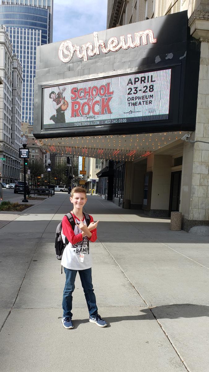 The tour has been going on since 2017 and wraps up this June. I joined in January 2019 and have been in rehearsals since then. I am a swing which is sort of like an understudy, but I will cover 4 different male kid roles when the primary actors are out for whatever reason. There are several child and adult swings in the Company, some of whom know as many as 10 or more tracks or roles! My debut was March 13 as guitar whiz Zack Mooneyham. I was also on as Billy the stylist and then James.
