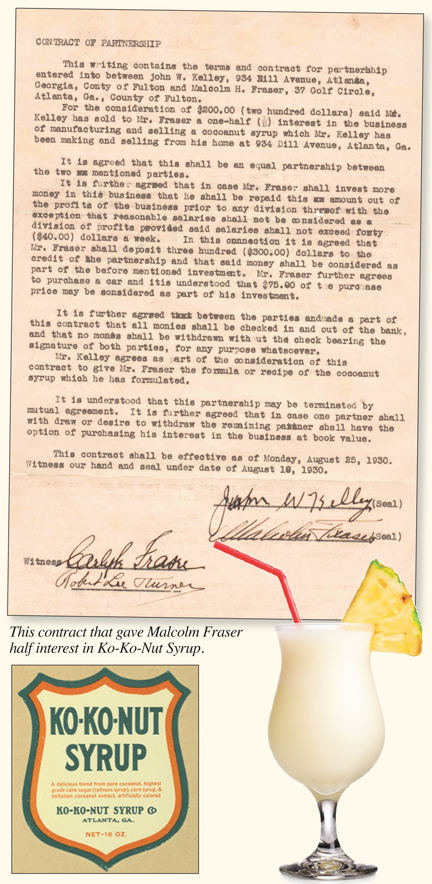 Eighty-four years ago, a young Malcolm Fraser thought he had the market cornered — the coconut syrup market, that is! If Malcolm had been a bit more successful in the syrup business, the Stuttering Foundation might have a different look today.In 1930, Malcolm paid John Kelley $200 for half interest in his coconut syrup business in Atlanta, Georgia. They called it Ko-Ko-Nut Syrup. Malcolm set out to market it to all the grocers in Atlanta.