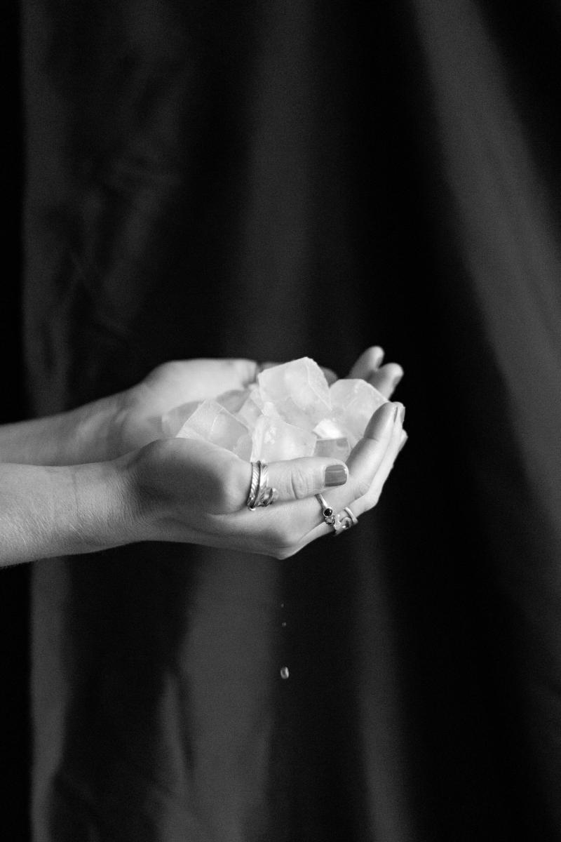 The photographs were taken indoors in natural light and then produced in a black and white format to highlight the gray area between what is observed and what is hidden to the naked eye.