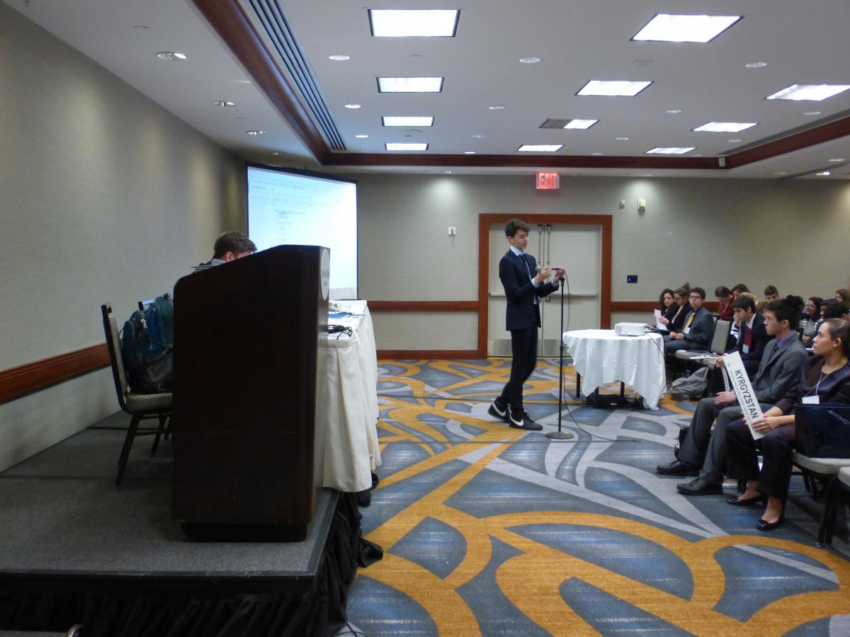 | Achilleas Souras speaking at the Model United Nations Conference in New York City. |