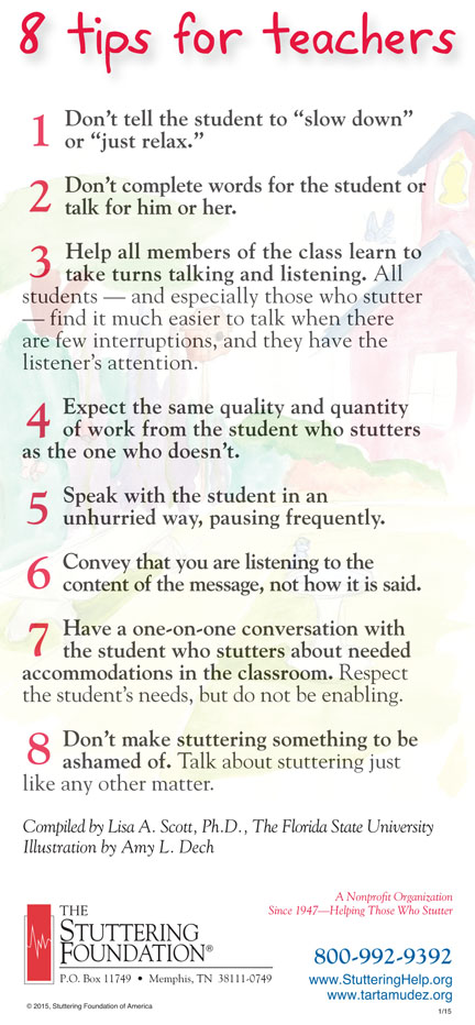 The nonprofit Stuttering Foundation answers these and many other questions in its brochure, 8 Tips for Teachers - available now in both English and Spanish.